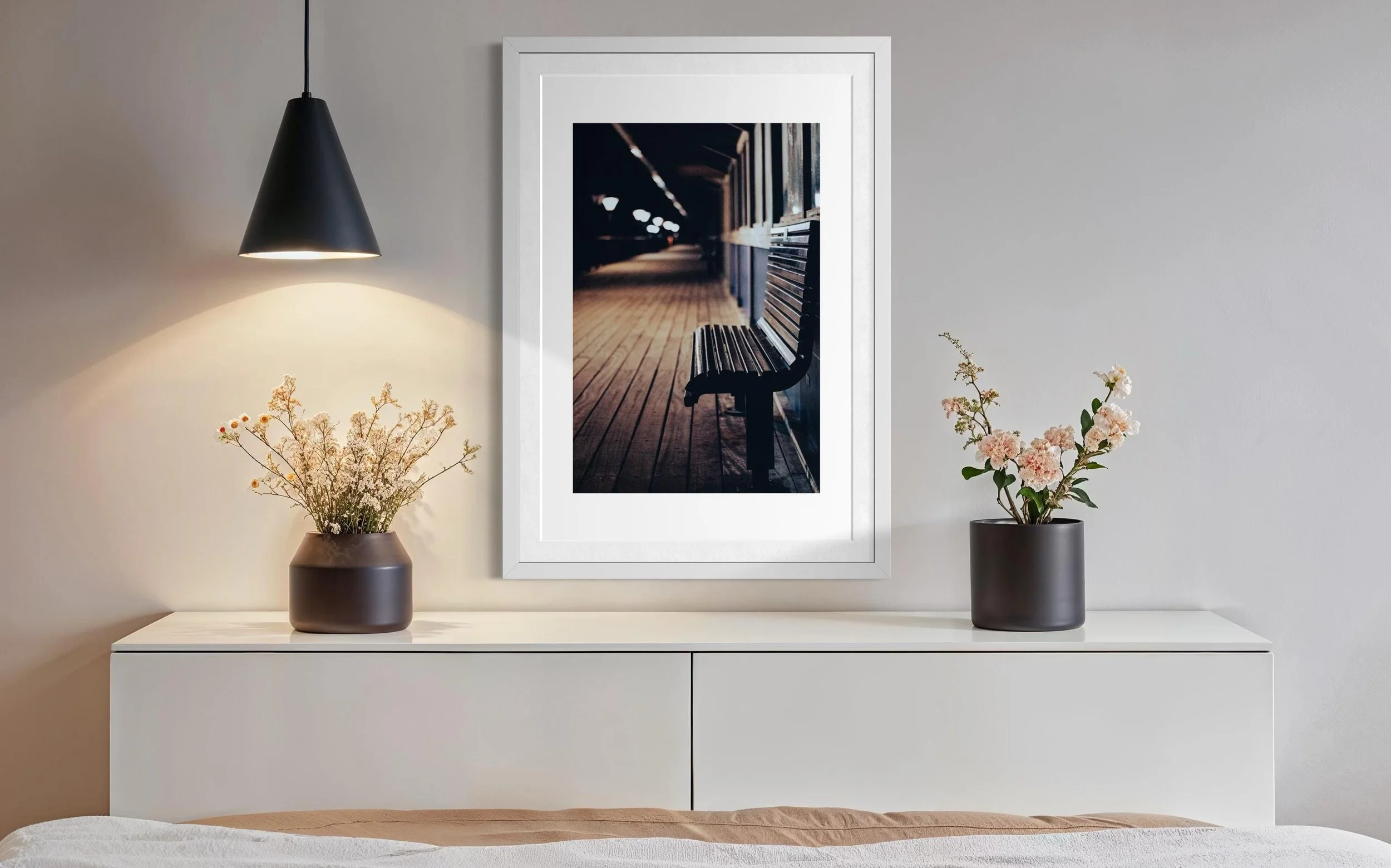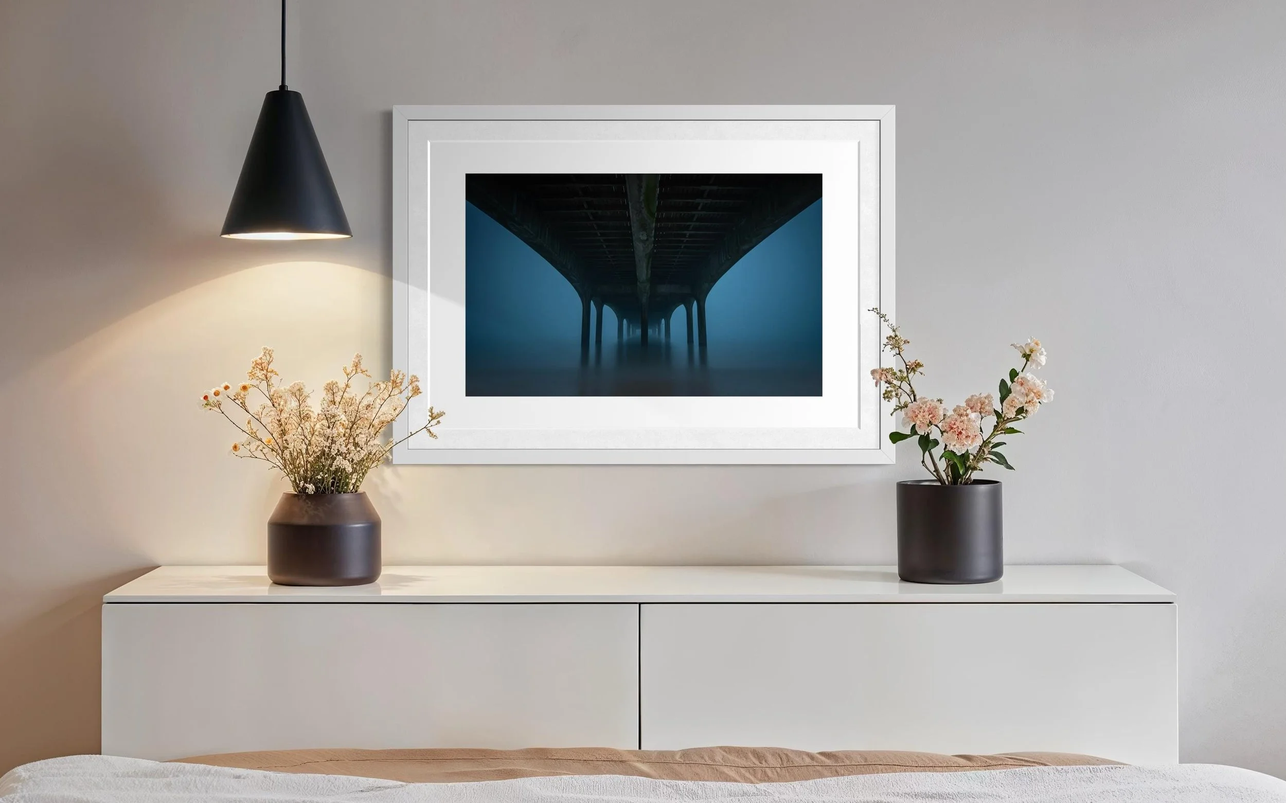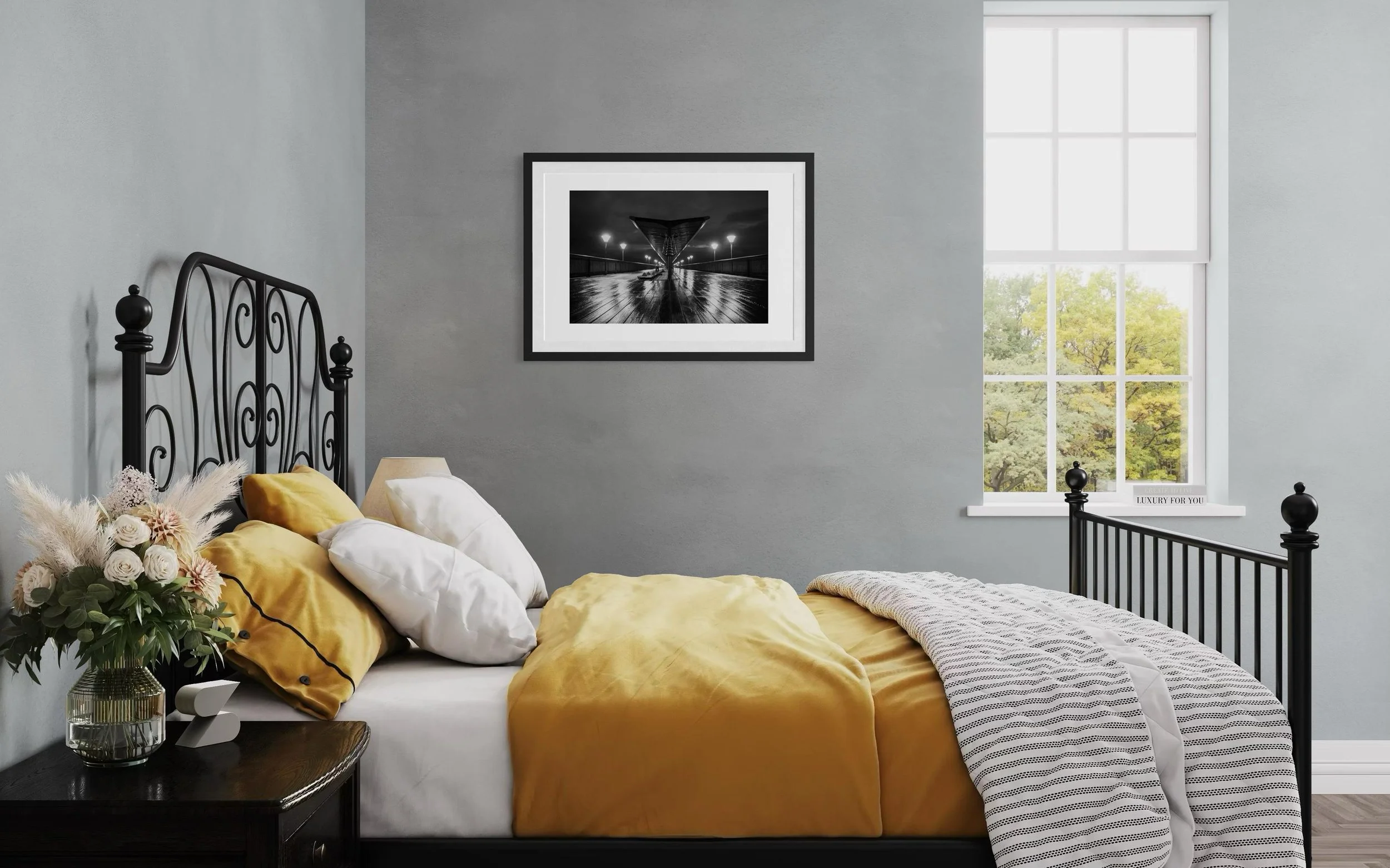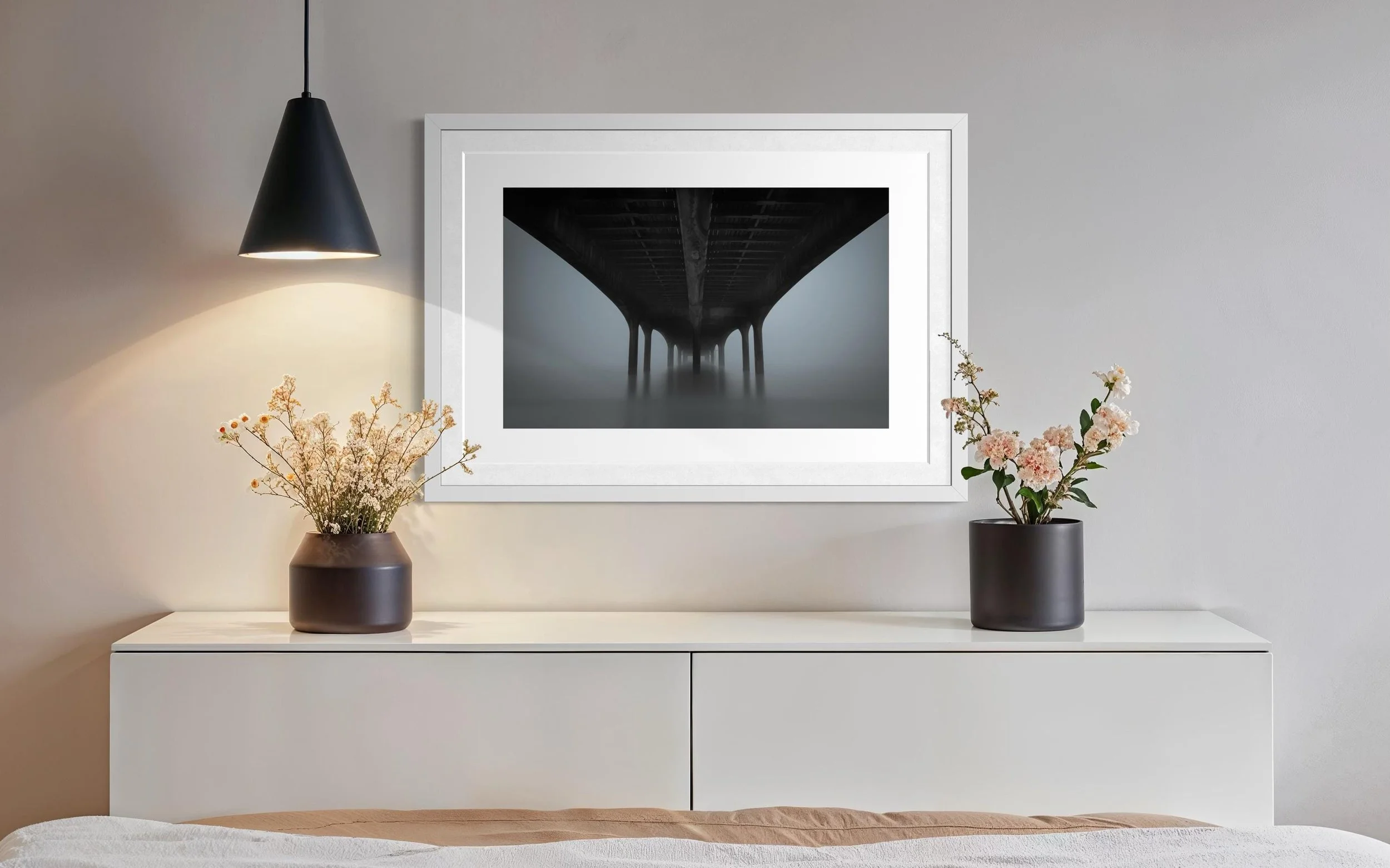 All my pictures are sent unframed and therefore allowing you to choose your own frame/colour/style to suit the room where you wish to mount your artwork. I would always recommend for artwork to be professionally framed. Think carefully about the size of the frame before purchasing. One recommendation I always give is to cut a piece of paper out to the dimensions you are thinking about purchasing, place it on the wall and see how the proportion looks and feels. However, also remember the dimensions are for the canvas, and once you add a mounting board and frame overall dimensions may increase.